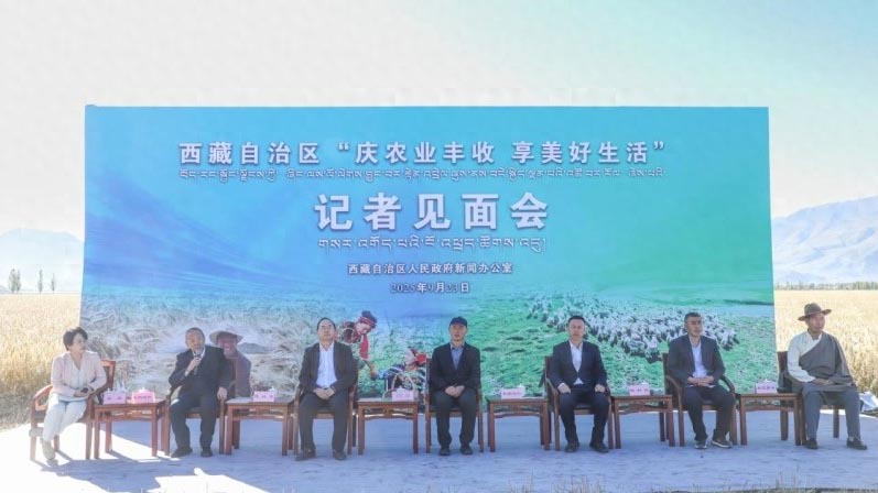 中国西藏网讯 9月23日,西藏自治区“庆农业丰收 享美好生活”记者见面会在拉萨市林周县强嘎镇典冲村的农田中举行,发言人介绍了西藏自治区成立60周年“三农”事业发展相关情况。
